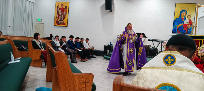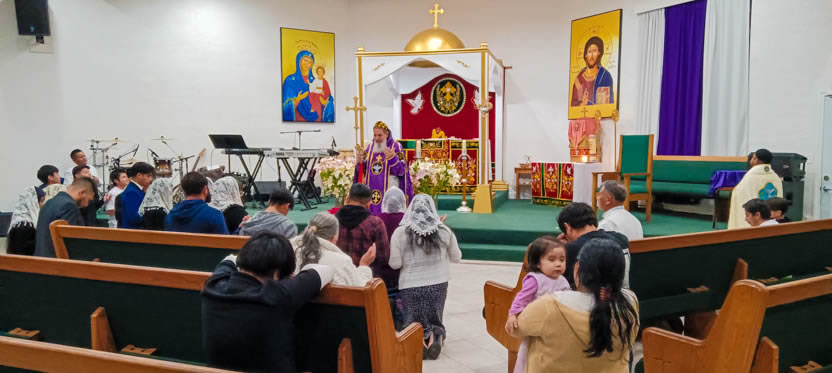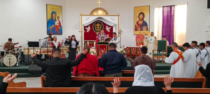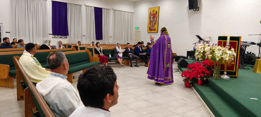 Después de la homilía y la oración, el arzobispo presidió la celebración solemne de la divina liturgia en la comunidad Santa María de Guadalupe de Riverside.