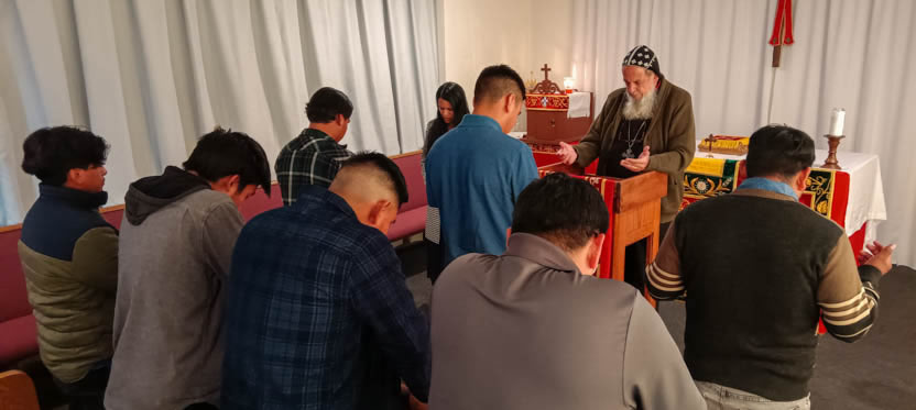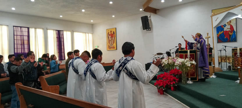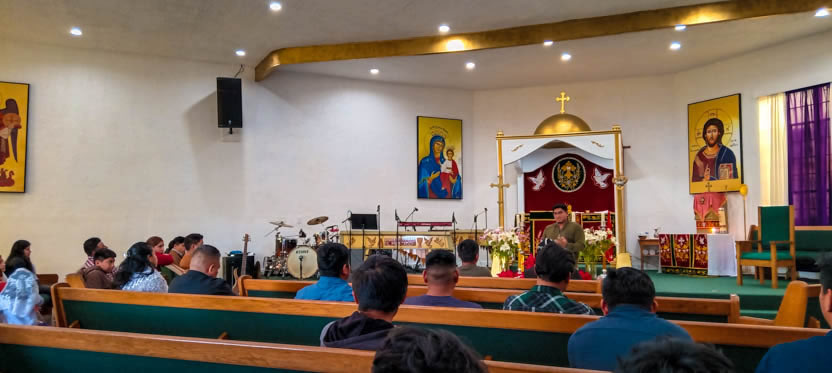 La actividad con los hermanos de la comunidad de Tzanixnam concluyó con la celebración de la divina liturgia, presidida por el arzobispo y concelebrada por el padre Jorge.