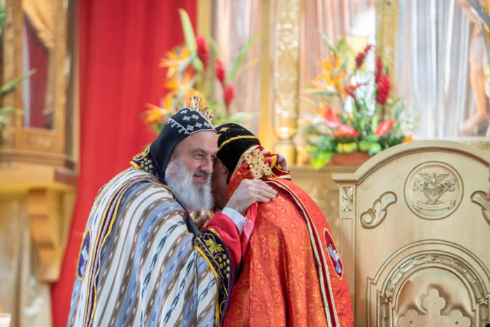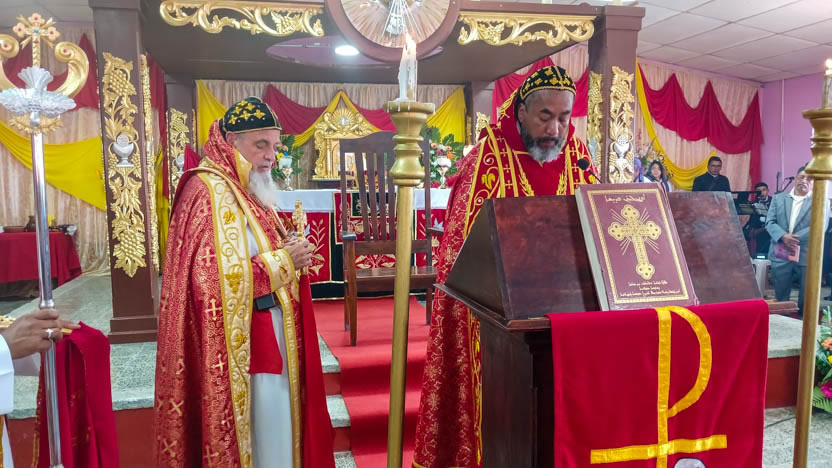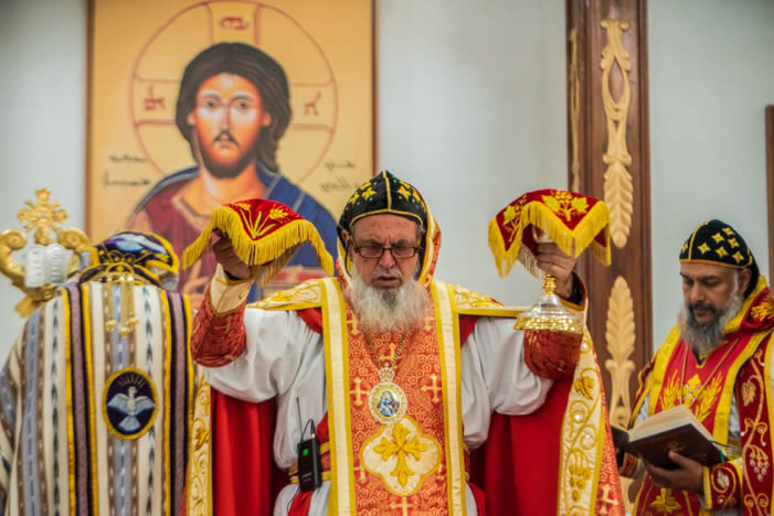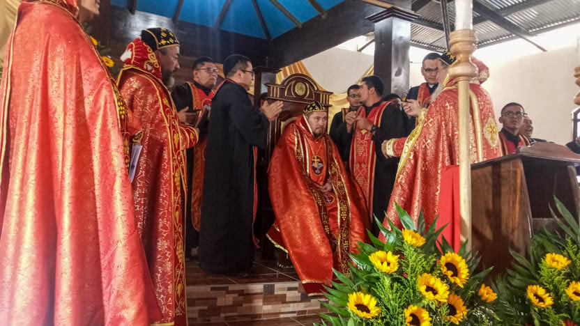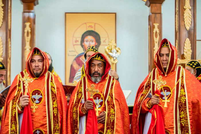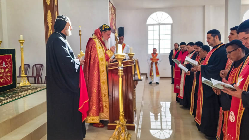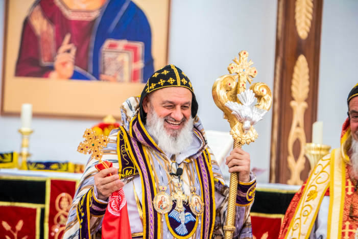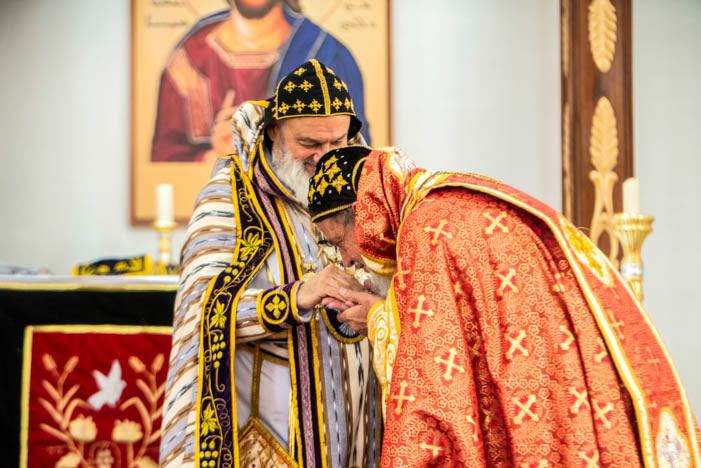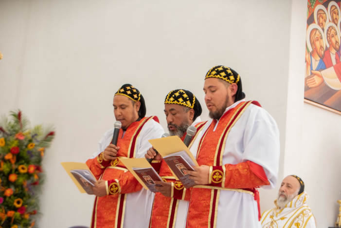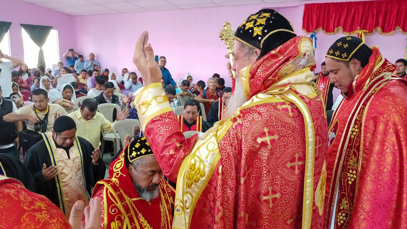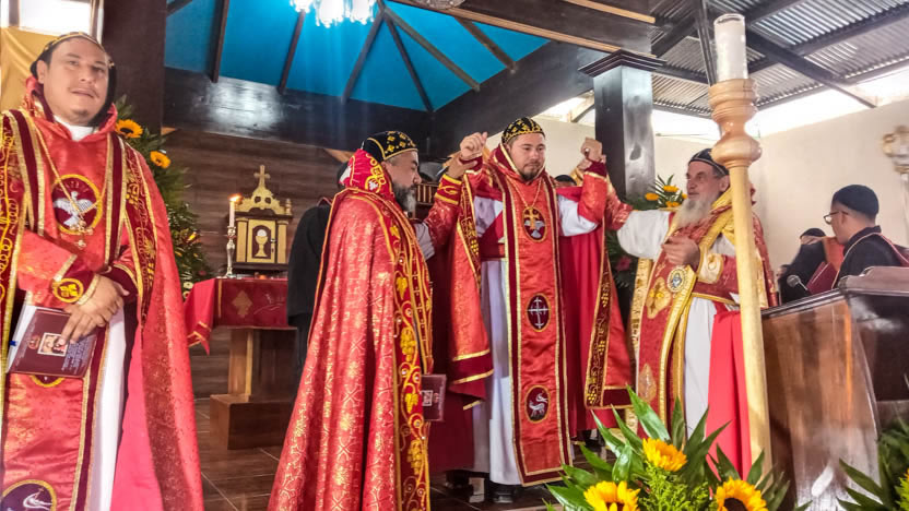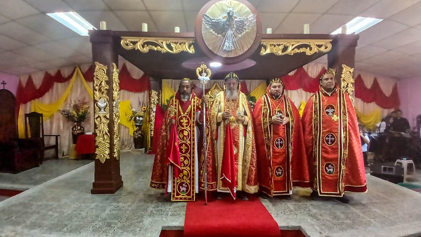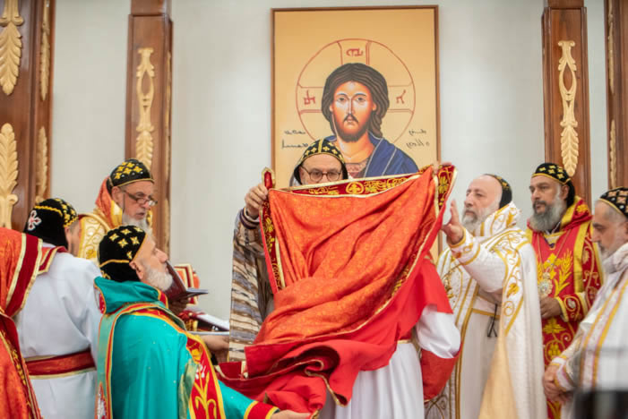 Antes de la comunión con los divinos misterios, como está previsto por el ritual de la Iglesia Siro Ortodoxa, el arzobispo presidió los ritos sacramentales de entronización de Su Gracia Mor Marcos Caicedo, como primer obispo de la diócesis del occidente.