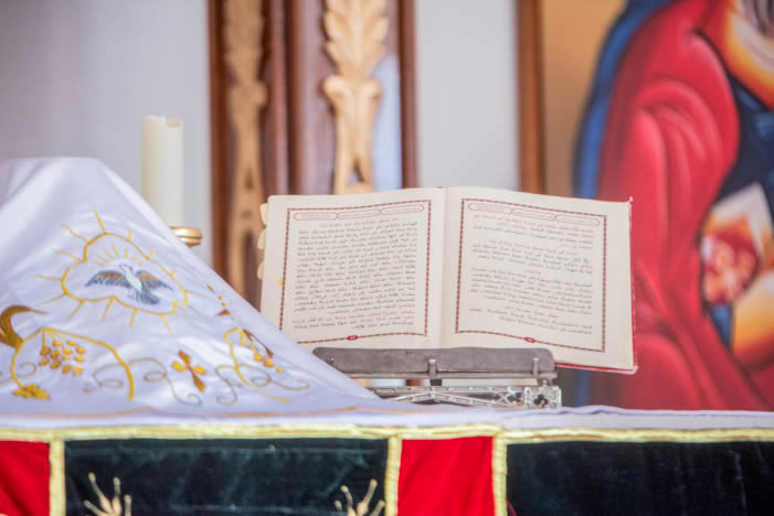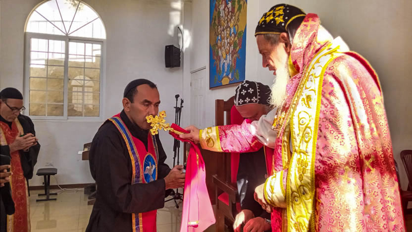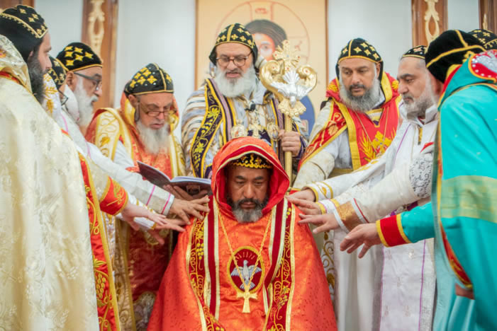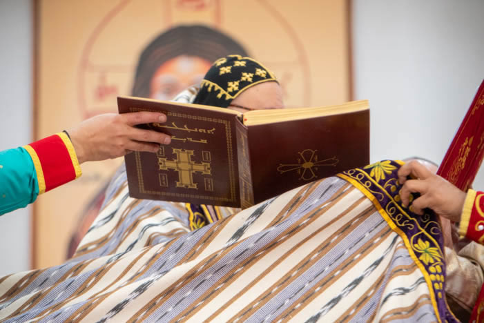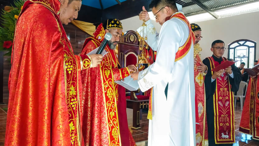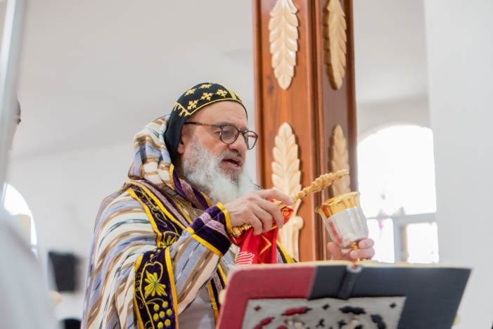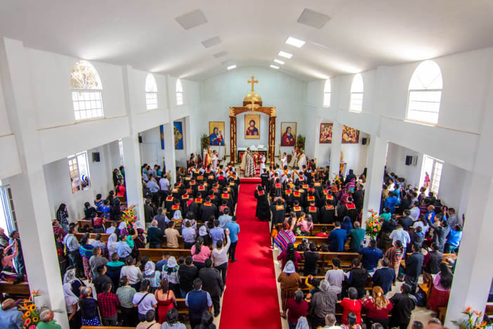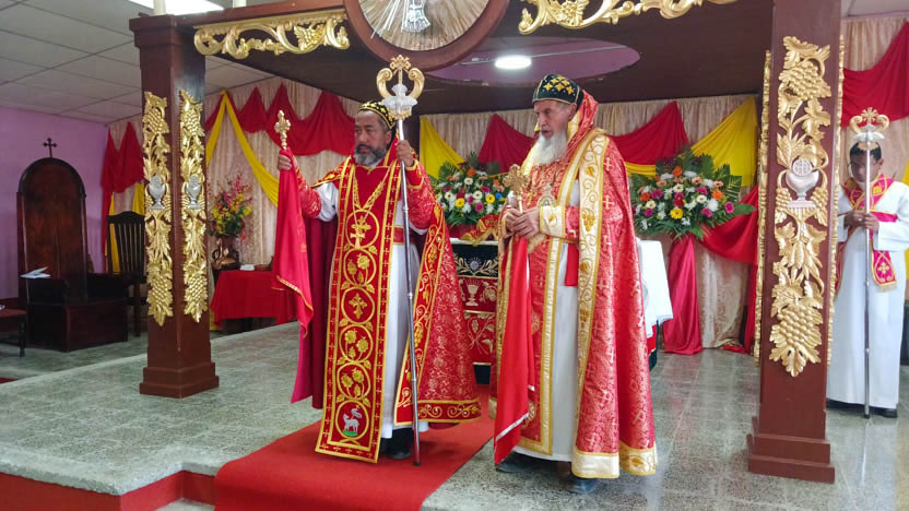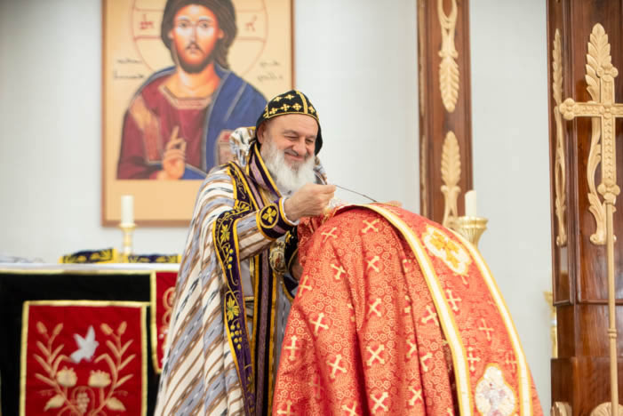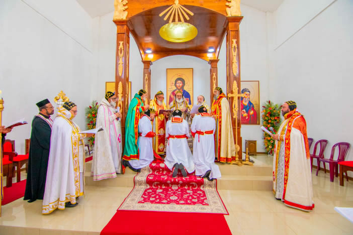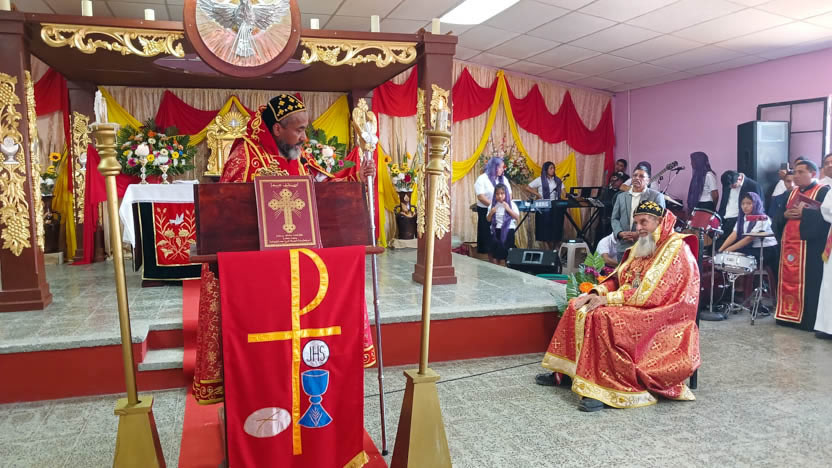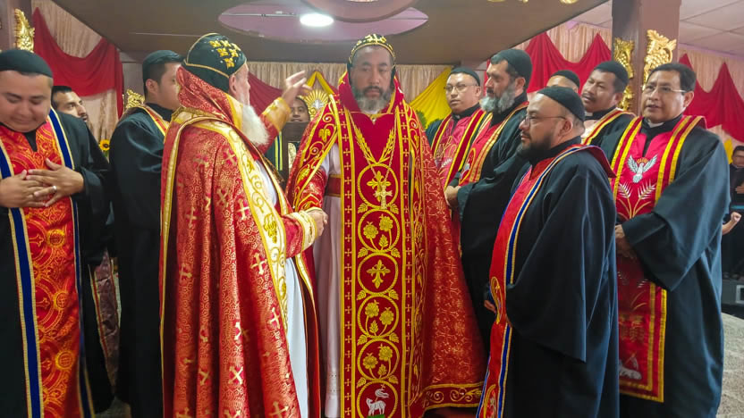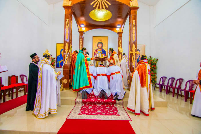 Antes de la comunión con los divinos misterios, como está previsto por el ritual de la Iglesia Siro Ortodoxa, el arzobispo presidió los ritos sacramentales de entronización de Su Gracia Mor Marcos Caicedo, como primer obispo de la diócesis del occidente.