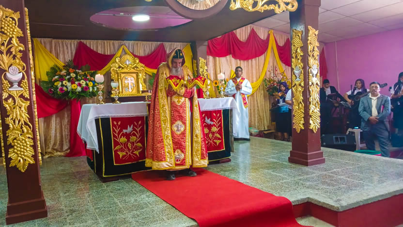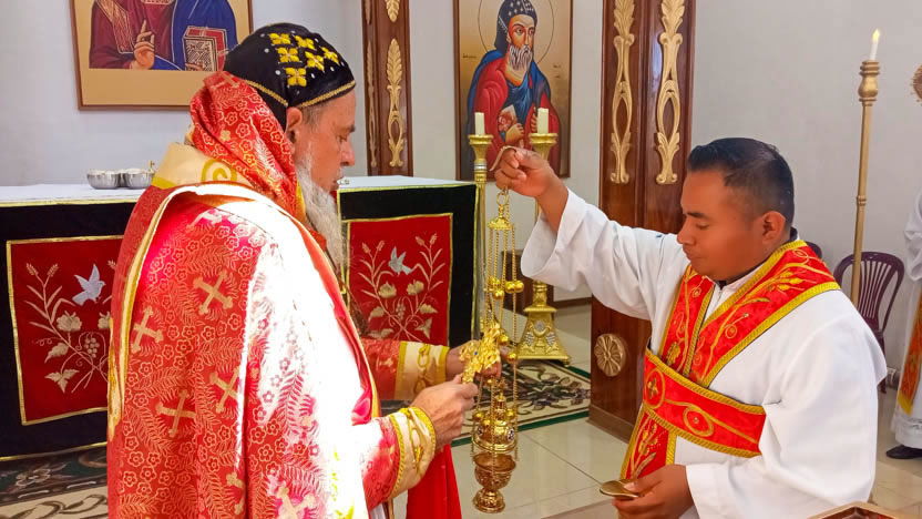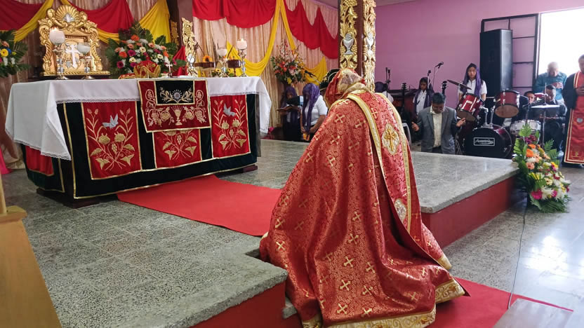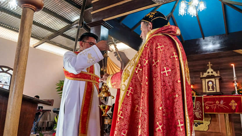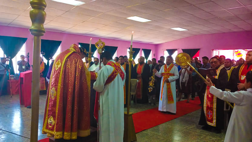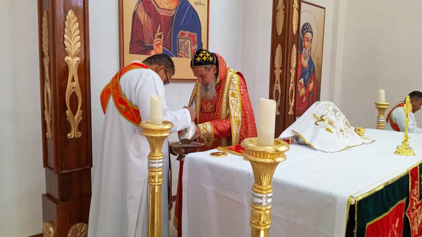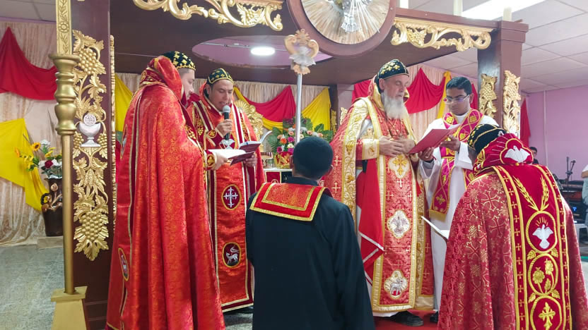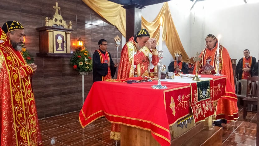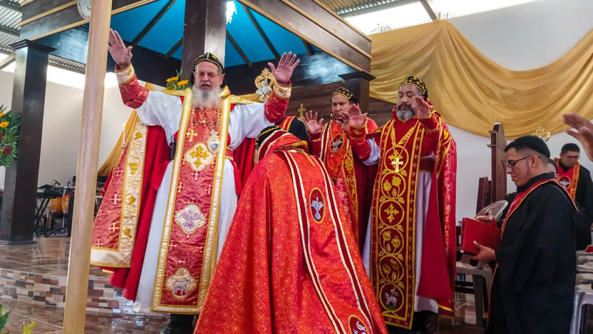 Concluidos los ritos de entronización del nuevo obispo, por petición de éste, Mor Santiago Eduardo, presidió los ritos de conclusión de la comunión.