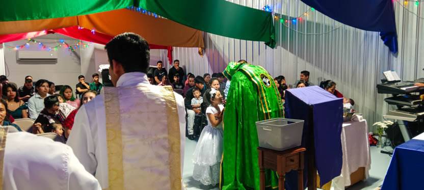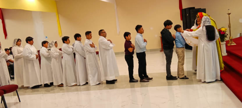 Los hermanos participaron con gran devoción y numerosos, comenzando con los cinco niños que recibieron los sacramentos de la iniciación, se acercaron a comulgar en los divinos misterios. |