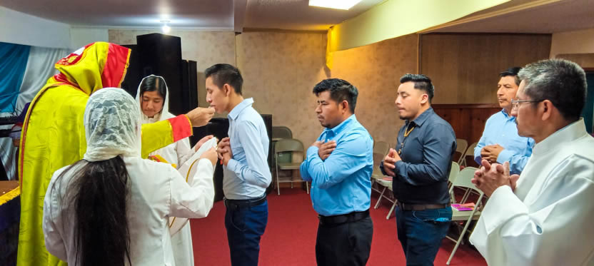 Los jóvenes Amílcar, Abimael, Jorge, Mario y las señoritas Mariana y Elsie, provenientes de diferentes lugares, se dieron cita en Dalton, para recibir la confirmación de la crismación y el envío misionero.