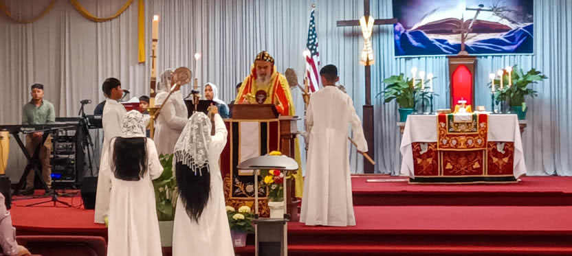 Después de tener un tiempo de oración personal y meditación acerca del misterio de la resurrección, el arzobispo presidió la celebración de la divina liturgia.