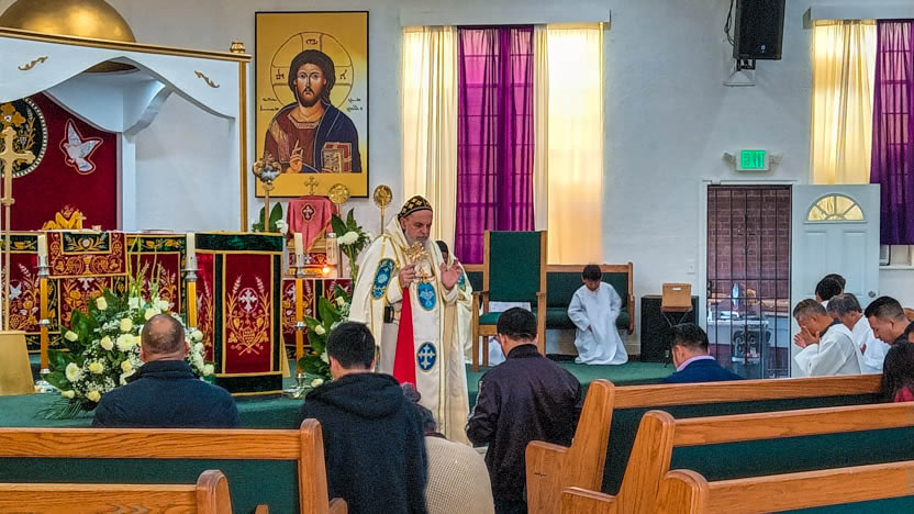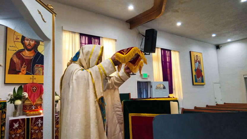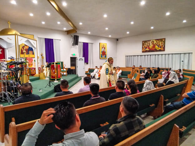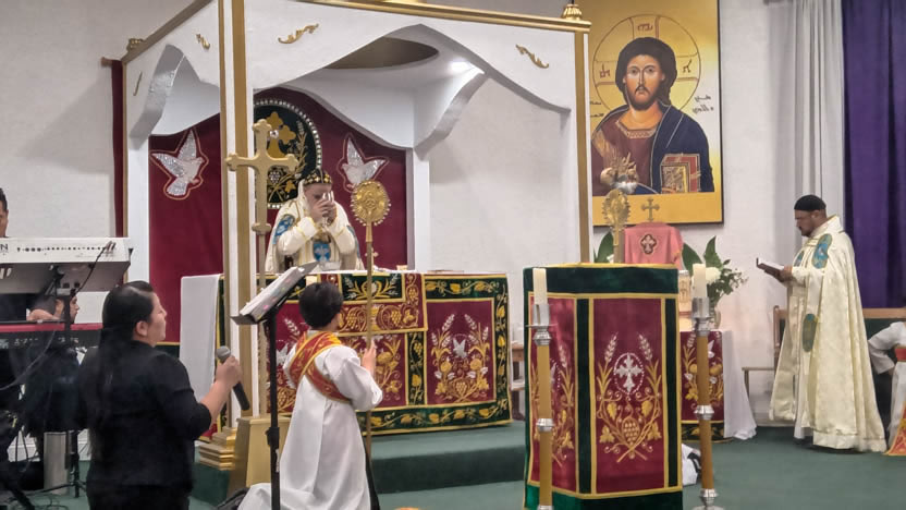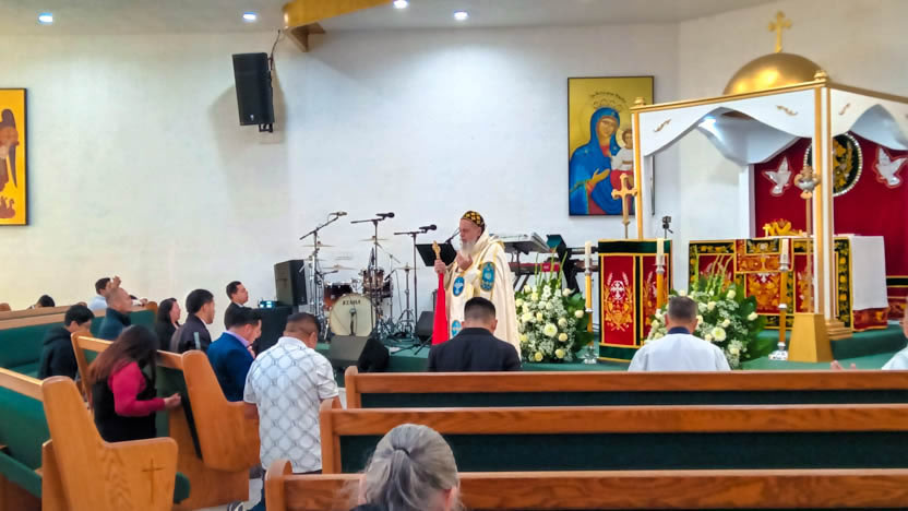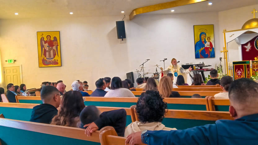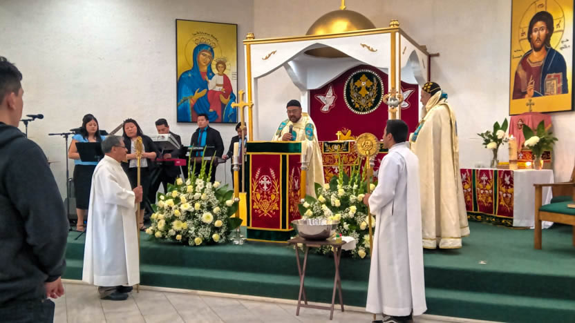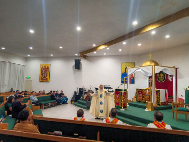 | 13: DIVINA LITURGIA EN LA SEDE DE LA PARROQUIA DE SAN MIGUEL ARCÁNGEL, EAST RANCHO DOMÍNGUEZ. |