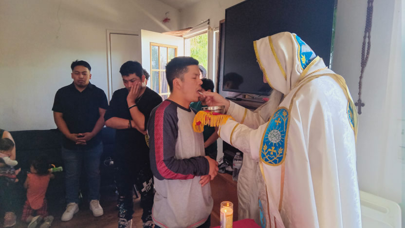 Después de compartir acerca del sentido del misterio de la vida y de la muerte, el arzobispo presidió la celebración de la divina liturgia para la familia del hermano Esteban David, líder de la comunidad.