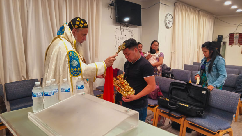 Finalmente, el arzobispo presidió la celebración de la divina liturgia para los miembros de la Comunidad Pacto Divino, ubicada en el Centro de Los Ángeles.