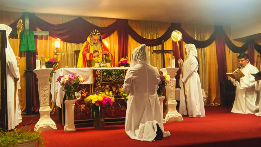 La visita a la comunidad La Esperanza culminó con la celebración de la Divina Liturgia, la cual fue presidida por el arzobispo y contó con la activa participación de los hermanos.