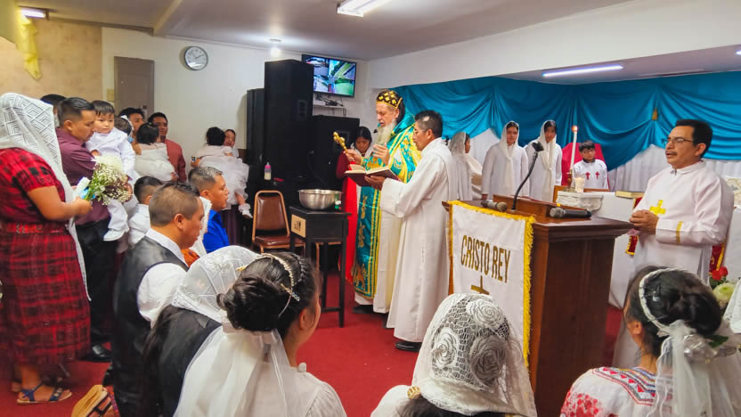 Los hermanos presentaron al niño Alan Reynaldo, hijo del hermano Guadalupe, originario de El Quetzal, Barillas, para que recibiera los sacramentos de la iniciación cristiana.