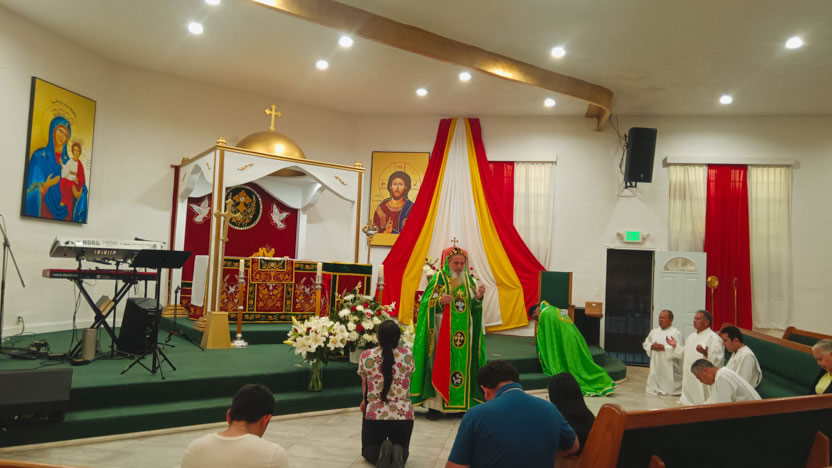 Finalmente, en un ambiente festivo, el arzobispo presidió la celebración de la divina liturgia, contando con la participación activa de toda la asamblea.