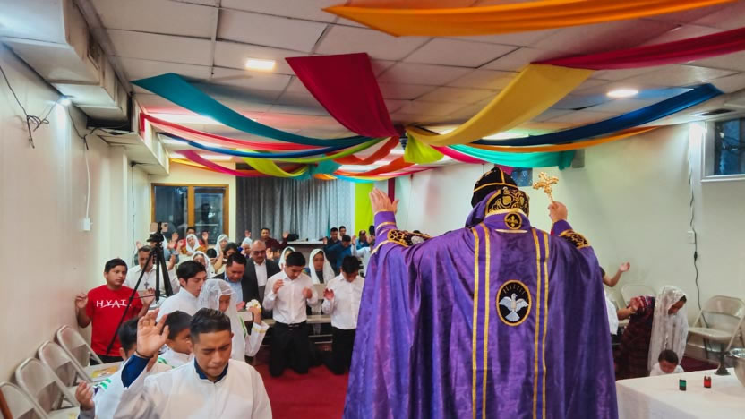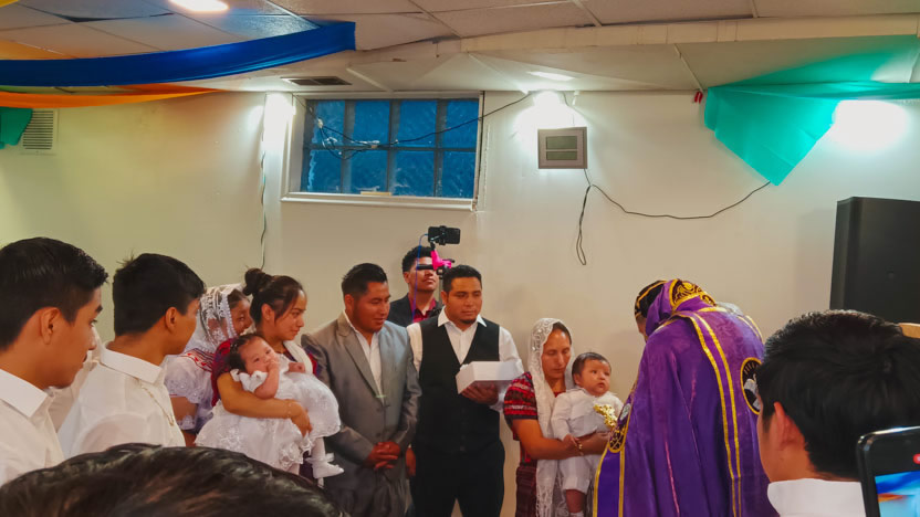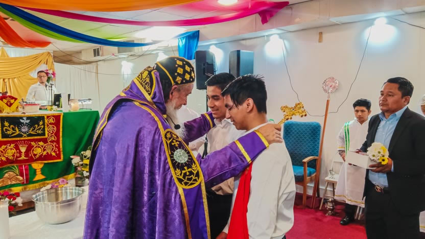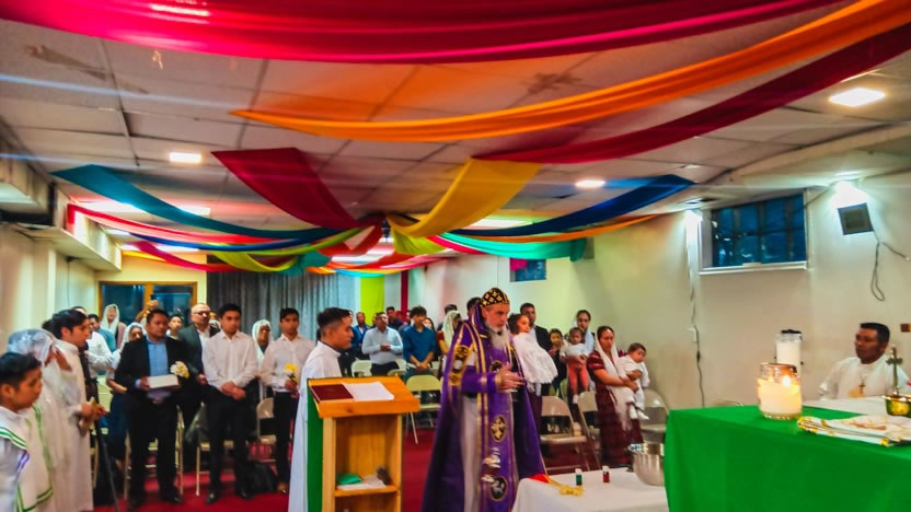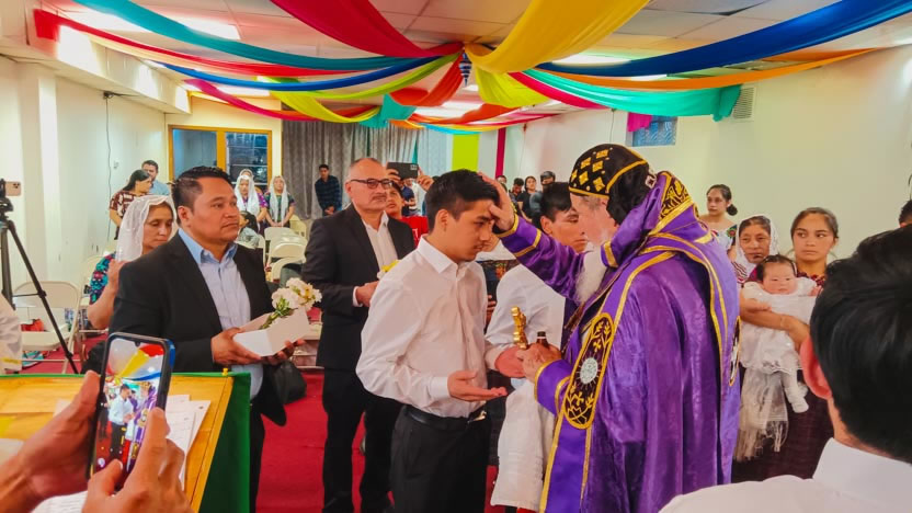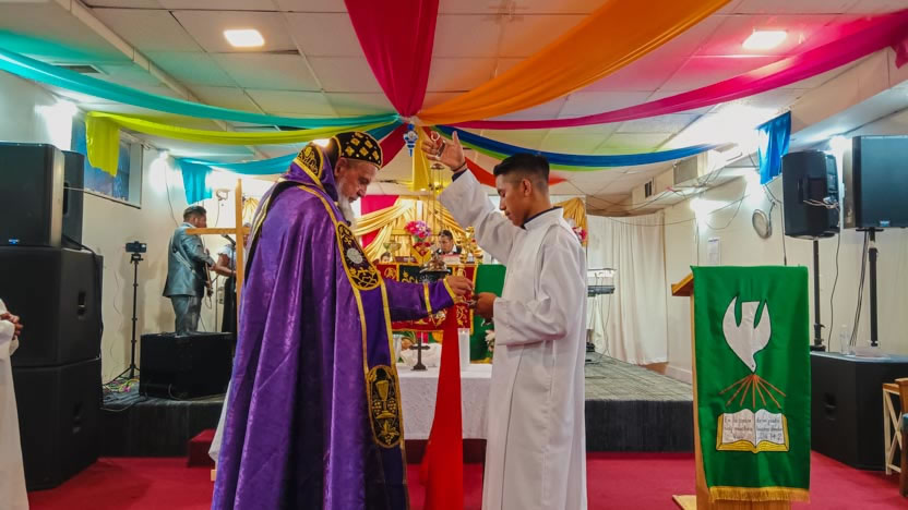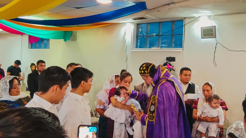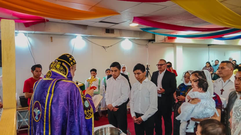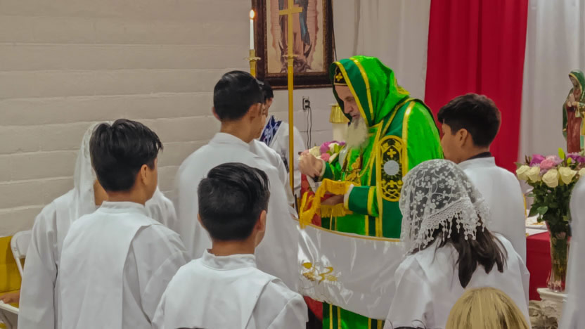 Después de la homilía, el arzobispo administró los sacramentos del bautismo, la crismación y la primera comunión a dos niños, cuyos padres son miembros de la comunidad.