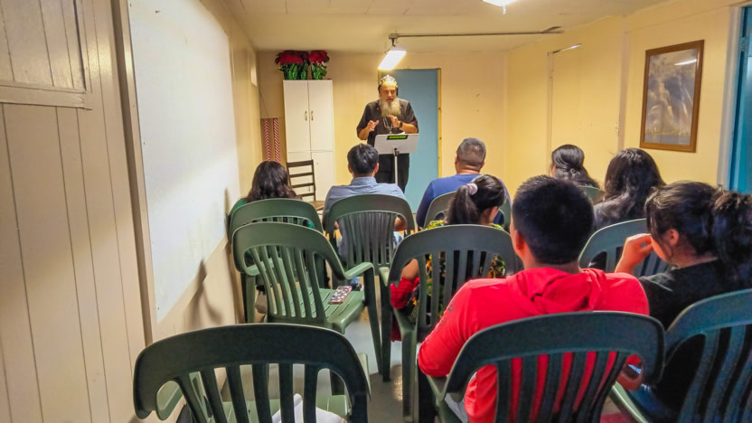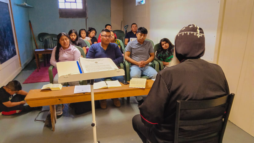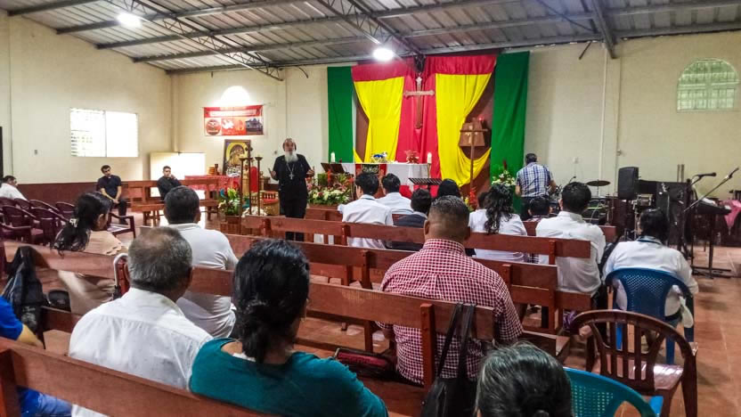 La visita comenzó con un tiempo para dar formación al pueblo de Dios, la cual incluyó explicar acerca del proceso seguido para la redacción de la Sagrada Escritura. |