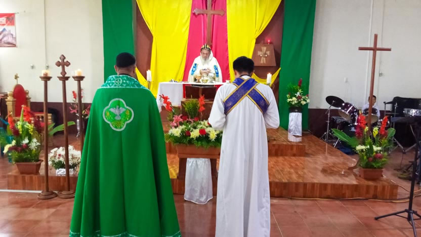 La liturgia fue presidida por el arzobispo, concelebró el padre Edwin González, párroco local y asistió el diácono Luís Pleitez, epesista en las misiones de El Salvador. |
