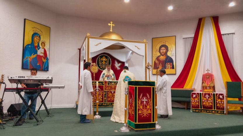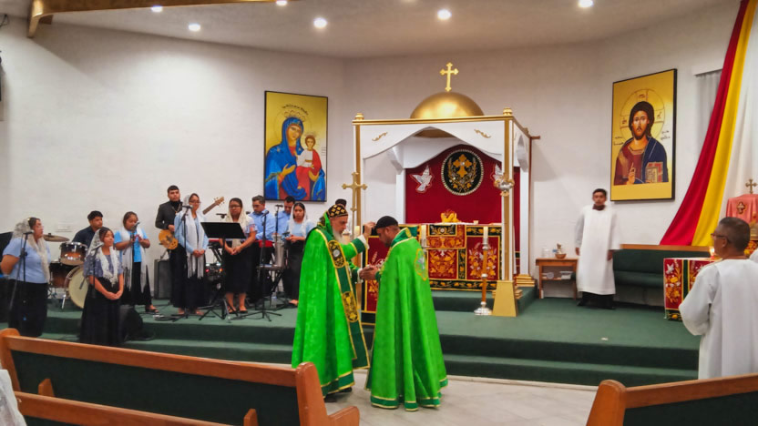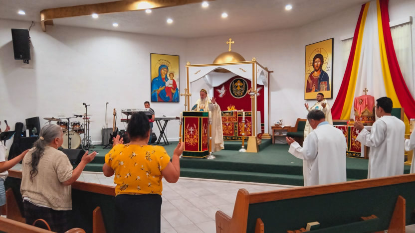 La visita concluyó con la celebración de la divina liturgia, la cual fue presidida por el arzobispo. Los hermanos Edgar, Jaqueline, Bryan y Diana, de la sede parroquia le acompañaron.