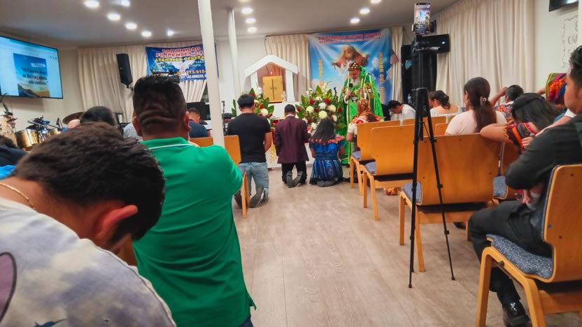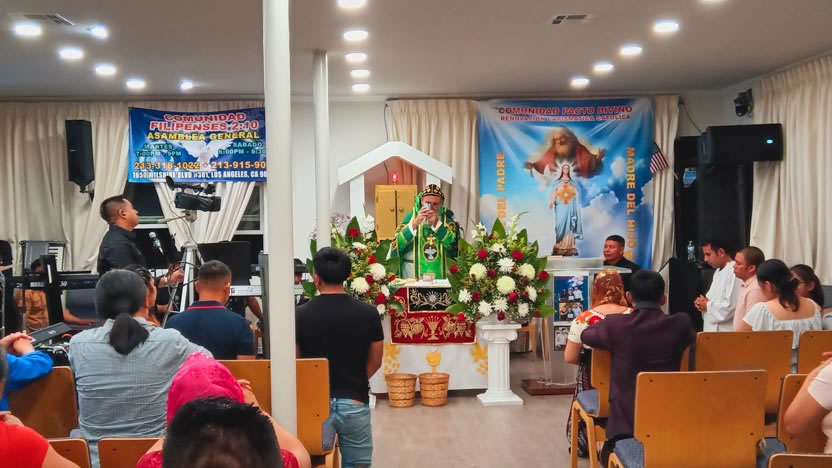 Ya entrada la noche, el arzobispo llegó hasta la sede de la comunidad Pacto Divino, también ubicada en el centro histórico de la ciudad de Los Ángeles.
