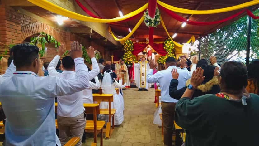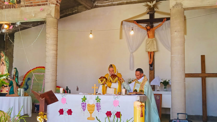 | 22: DIVINA LITURGIA CON FIELES DE LA VICARÍA DE OAXACA, SANTA MARÍA COYOTEPEC, OAXACA. |