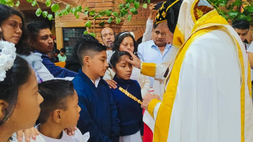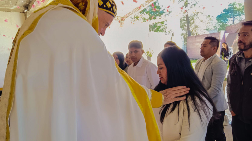 El padre Henry, preparó con esmero a un grupo de hermanos, tanto de Coyotepec como de Huehuetoca, para recibir el sacramento de la crismación.