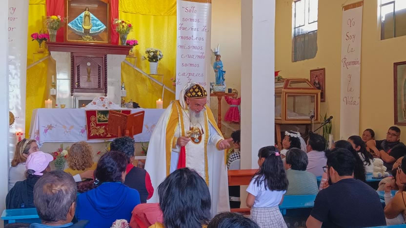 Seguidamente el arzobispo presidió la celebración de la divina liturgia en la parroquia Santa María de los Lagos de Coyotepec, Estado de México.