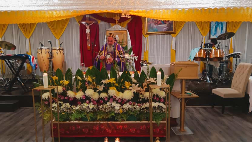 La visita a la comunidad de Cristo Rey culminó con la celebración de la divina liturgia, la cual fue presidida por el arzobispo y en la que los fieles participaron con mucha devoción.