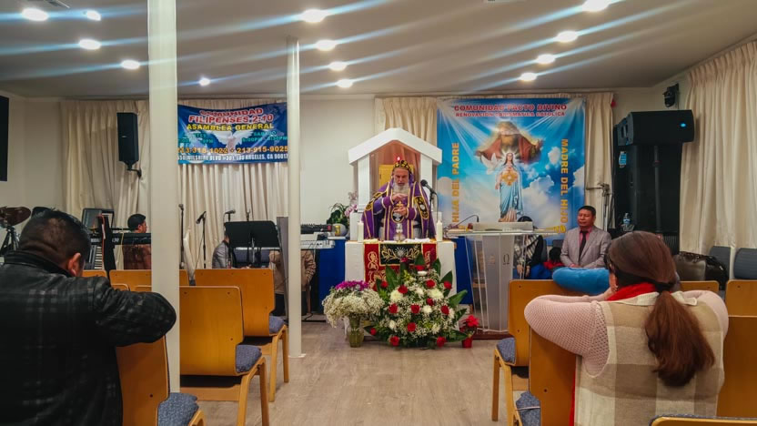 El mismo día 4, ya entrada la noche, el arzobispo llegó hasta la comunidad Pacto Divino, ubicada en el centro de la ciudad de Los Ángeles, para hacer la visita.