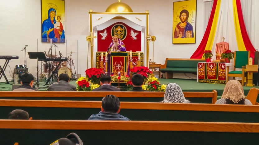 Seguidamente, el arzobispo presidió la celebración de la divina liturgia, para los miembros de la comunidad Ministerio el Pescador de la ciudad de Los Ángeles.