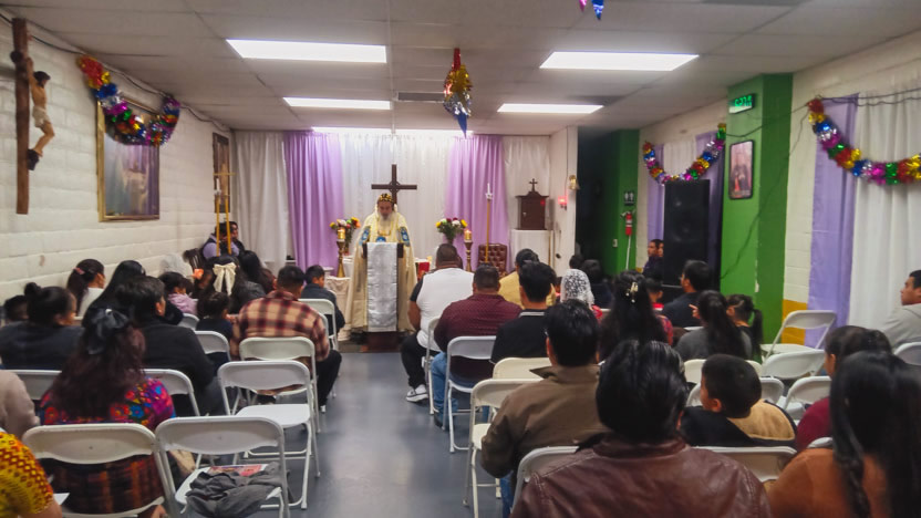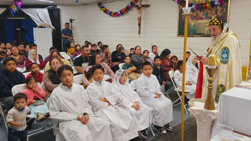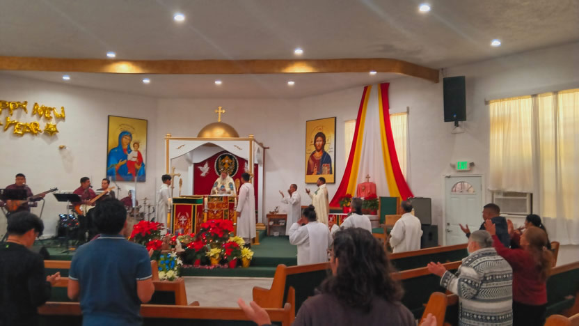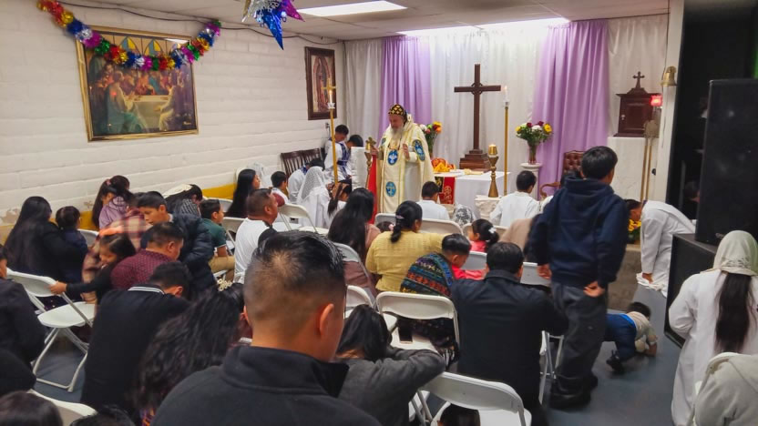 El domingo, al caer el día, el arzobispo llegó hasta la comunidad Santa María de Guadalupe, ubicada en la ciudad de Riverside, para celebrar los divinos misterios.