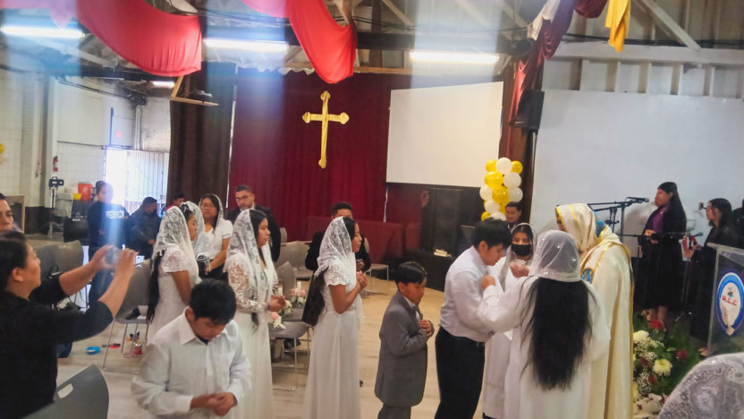 La ocasión especial de la liturgia fue que seis hermanos, hijos de líderes de la comunidad hicieron la primera reconciliación y la comunión solemne.