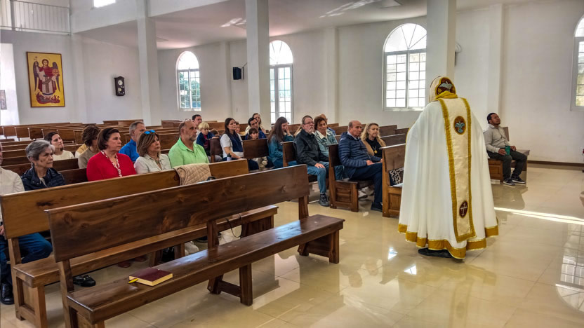 La visita culminó con la celebración de la divina liturgia, en cuyo marco se realizó la comunión solemne de los seis hermanos que habían sido preparados.