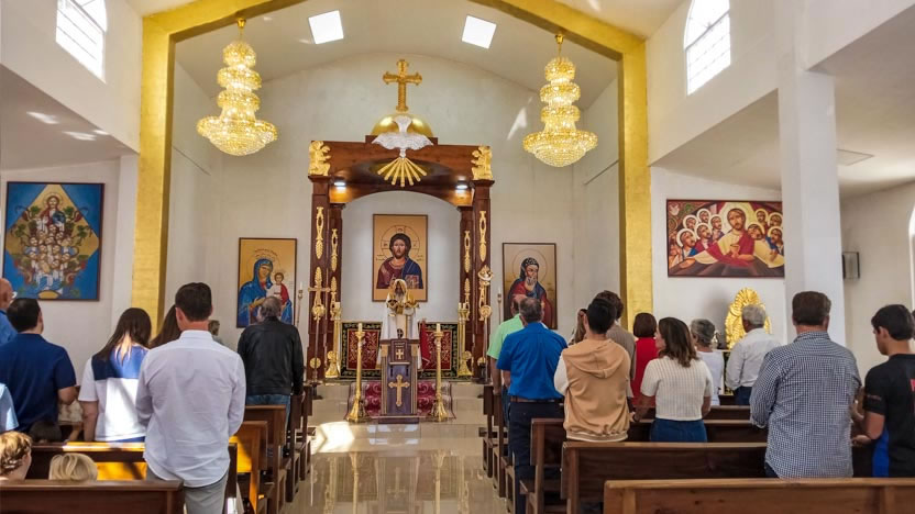 Luego se celebró la divina liturgia, presidida por el arzobispo y concelebrada por el padre Jorge Cerda, en la que los hermanos, prácticamente en su totalidad, pudieron comulgar con los divinos misterios.