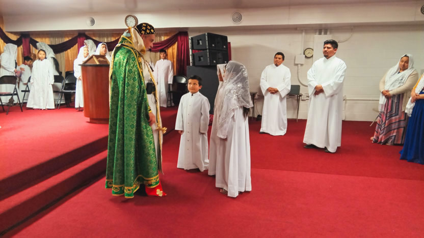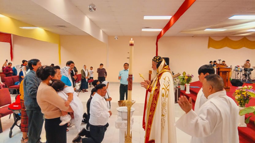 Una niña, hija de miembros de la comunidad La Voz del Espíritu Santo, fue presentada, para que se le administraran los sacramentos de la iniciación cristiana.