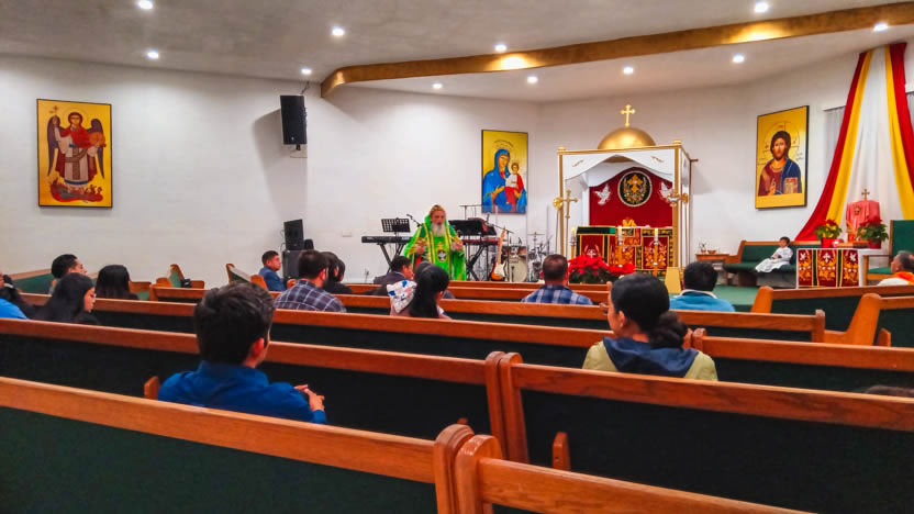 La visita a la comunidad Poder del Espíritu Santo culminó con la celebración de la divina liturgia, la cual fue presidida por el arzobispo y contó con la participación de los ministros de la comunidad.
