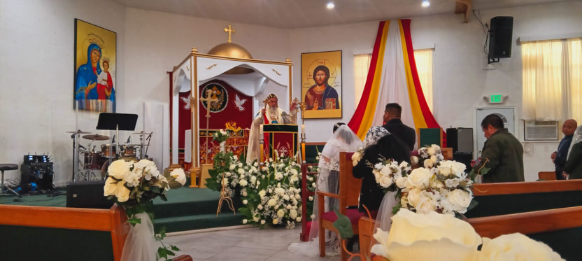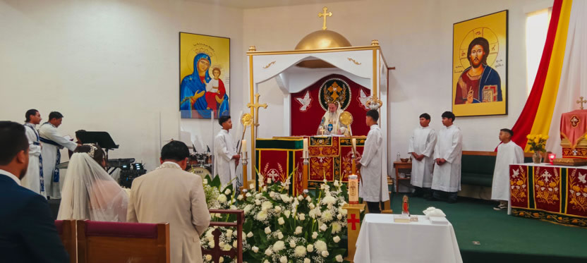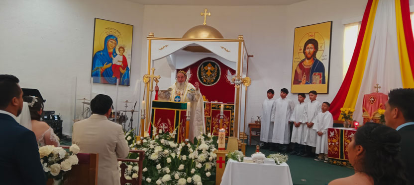 Después de la celebración del matrimonio, se continuó con la celebración de la divina liturgia, la cual presidida por el arzobispo.