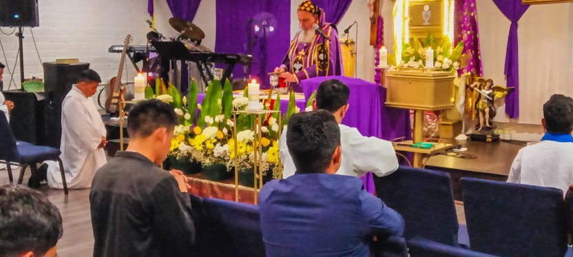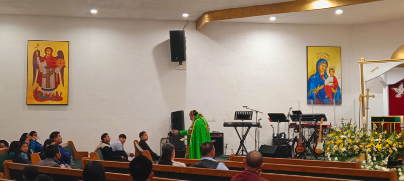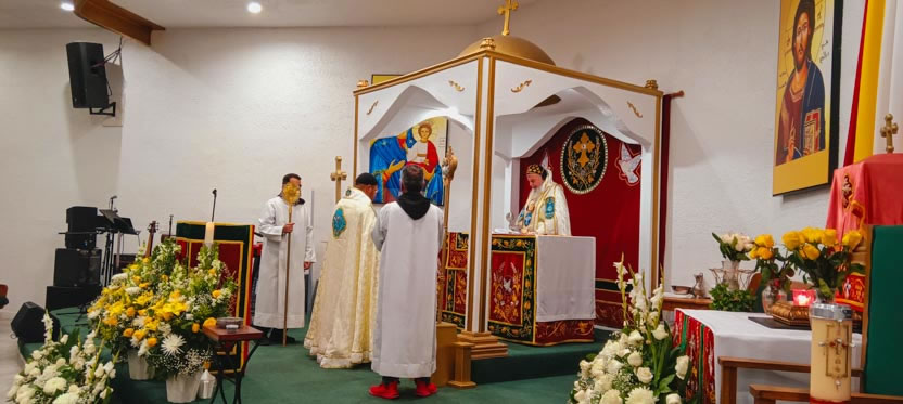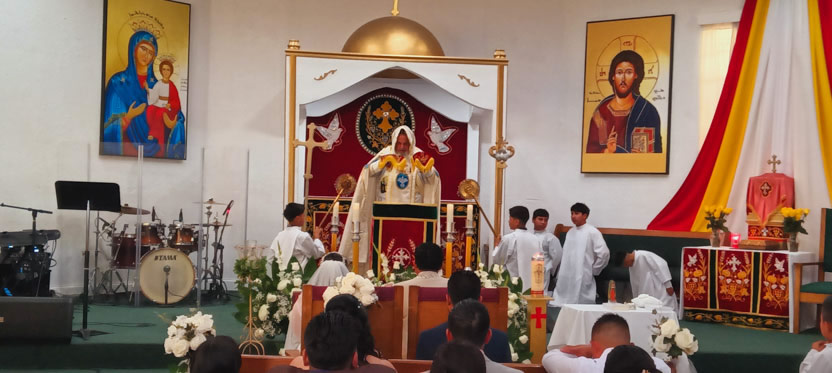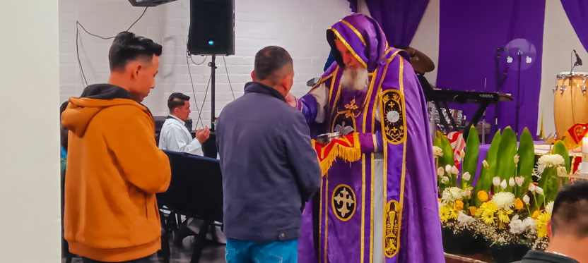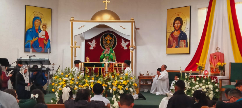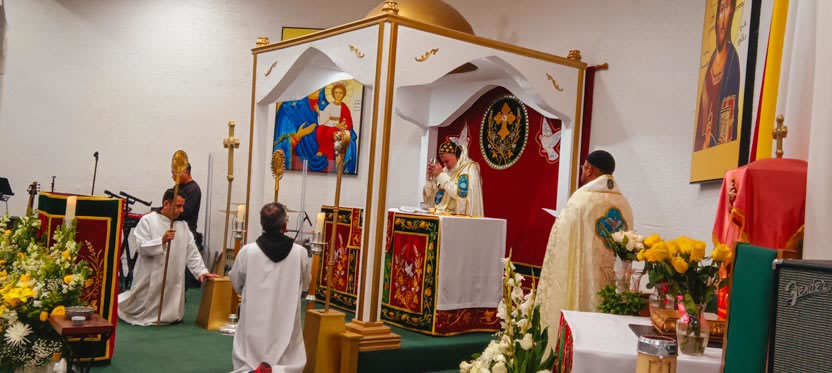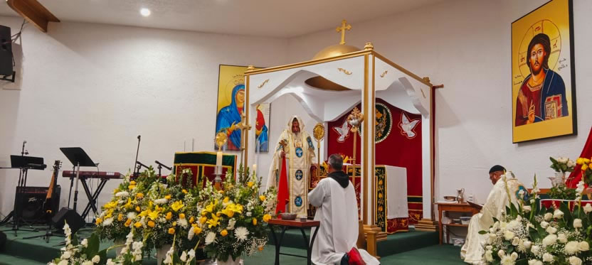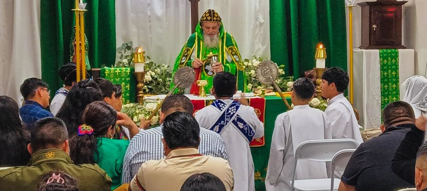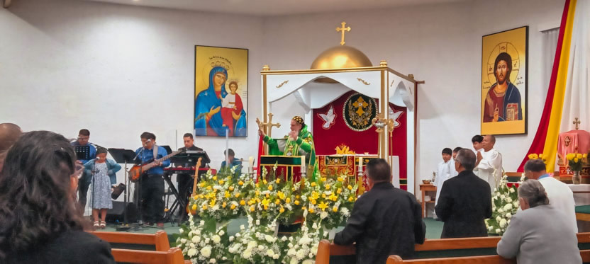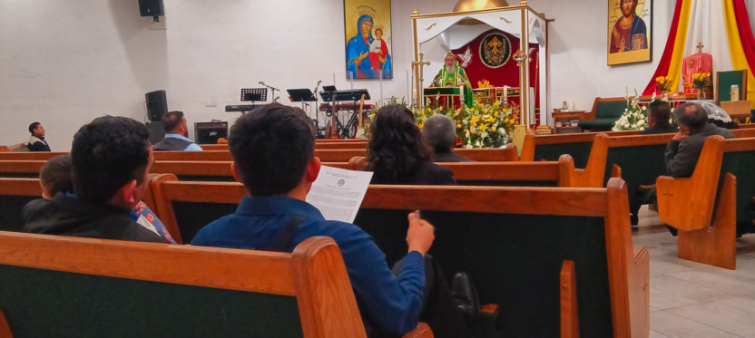 La visita a la comunidad Poder del Espíritu Santo culminó con la celebración de la divina liturgia, presidida por Mor Santiago Eduardo. Él estuvo acompañado por los hermanos Edgar y Jaqueline.