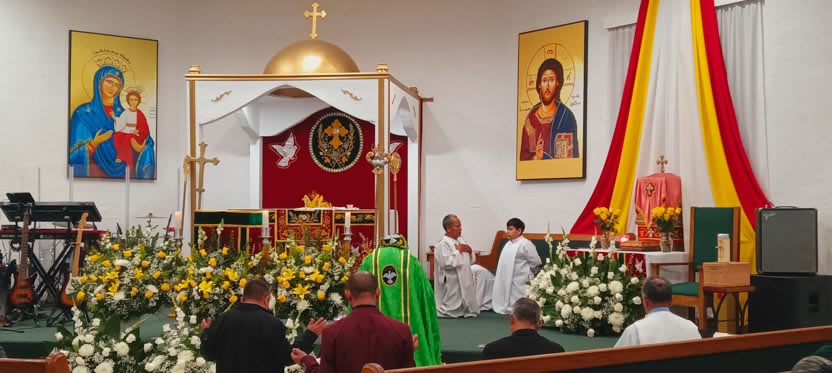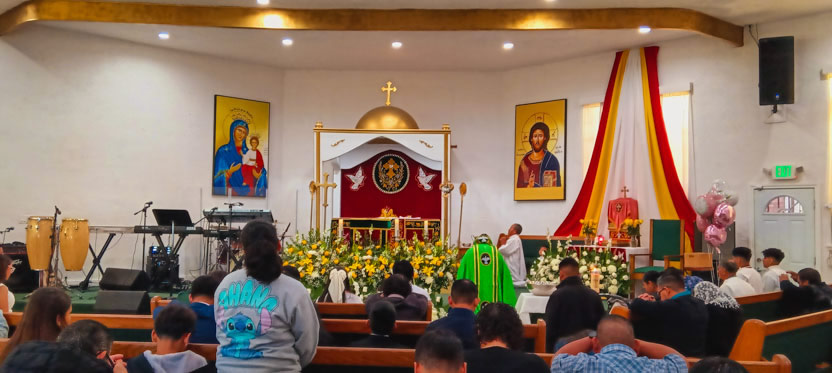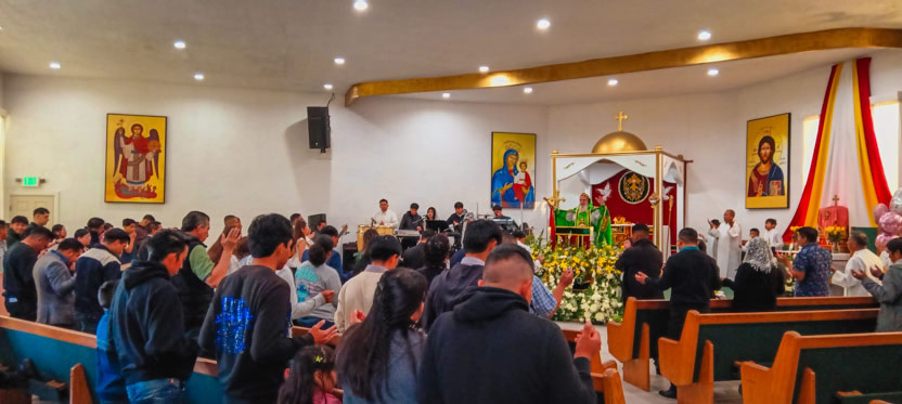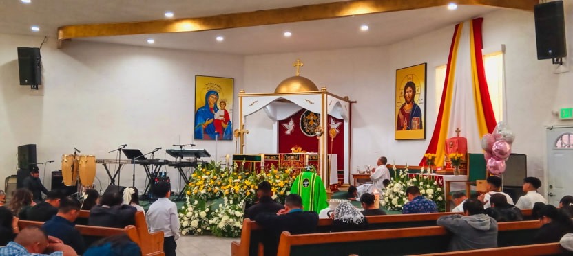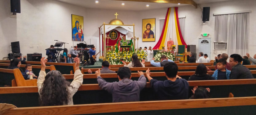 | 01: DIVINA LITURGIA EN LA ASAMBLEA DE LA PARROQUIA SAN MIGUEL ARCÁNGEL, EAST RANCHO DOMÍNGUEZ. |