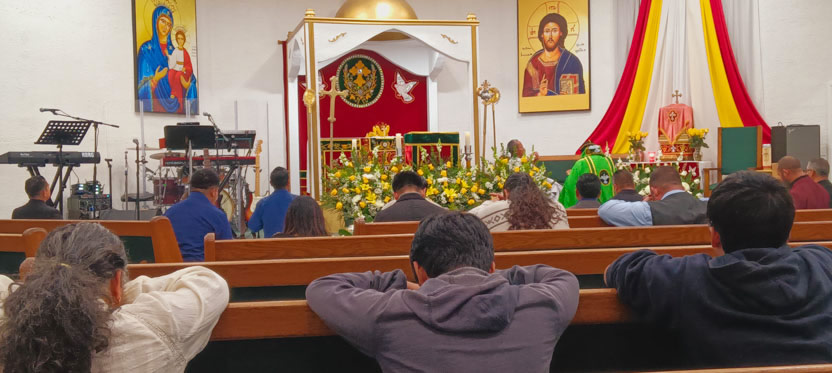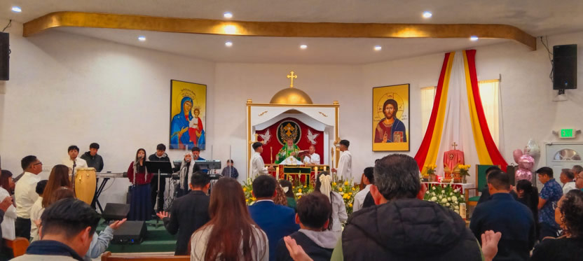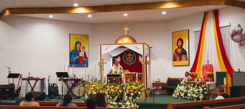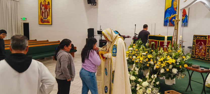 La visita a la comunidad Santa María de Guadalupe de Riverside, concluyó con la celebración de la divina liturgia, la cual fue presidida por el arzobispo.