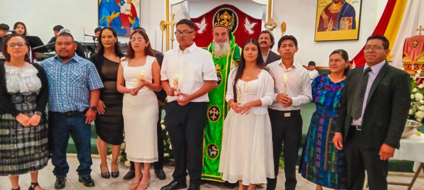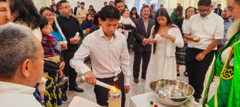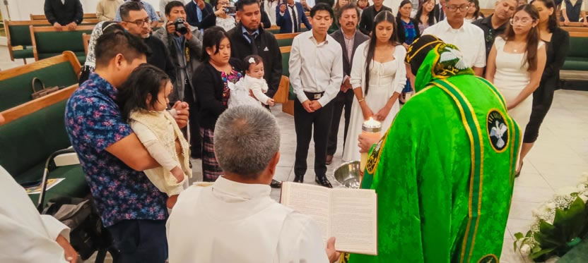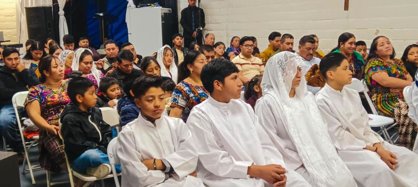 Se comenzó con Lorenzo Lukax y Aylin Dalay, a quienes se les administraron los tres sacramento de la iniciación cristiana. Sus padres asumieron la responsabilidad de educar a los niños en la fe. |