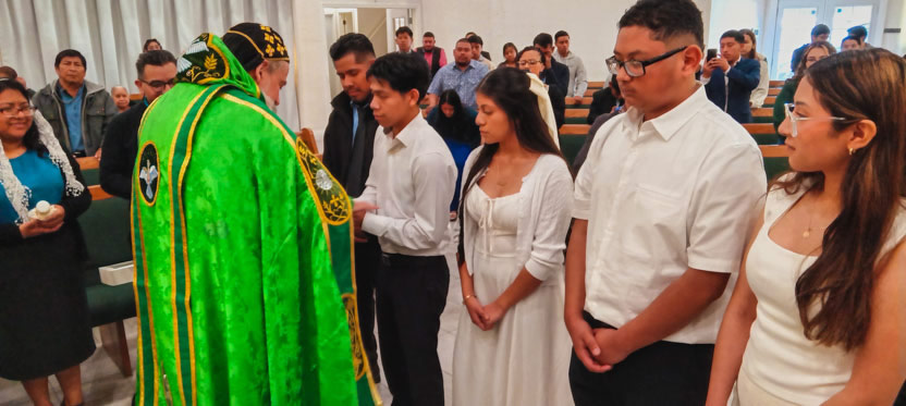 A cuatro hermanos, se les preparó para que, siguiendo las huellas de los apóstoles, fueran confirmados en la crismación, por la unción del Espíritu Santo.