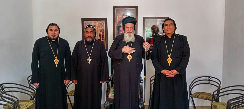 El arzobispo en el centro, Mor Marcos y Manuel y José Wilfredo a la izquierda y Mor Andrés Orlando al lado derecho. |