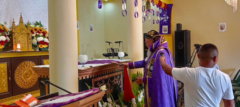 La visita a las comunidades de la Costa Sur Culminó con la celebración de la divina liturgia, la cual fue presidida por el arzobispo y concelebrada por el Padre Rolando.