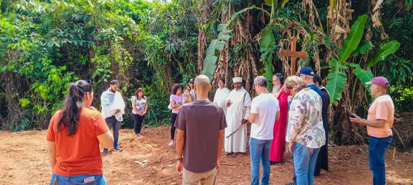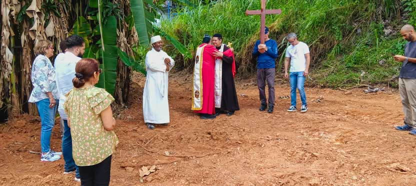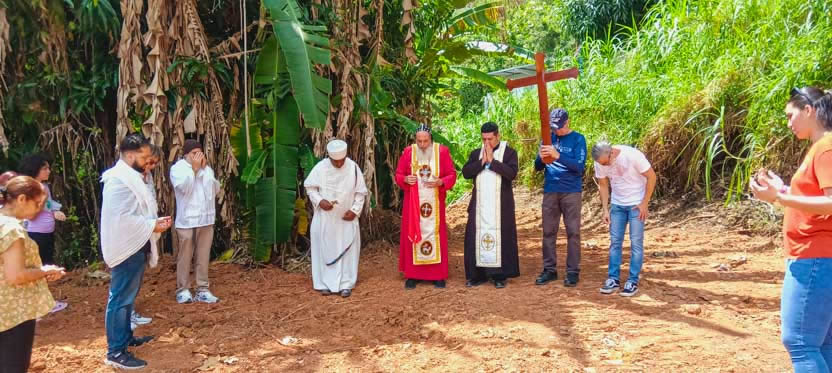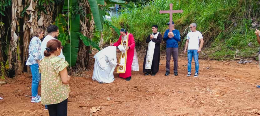 El sábado 26, la visita comenzó con las oraciones de bendición del nuevo predio adquirido recientemente, para construir la sede de la parroquia y de la misión. |