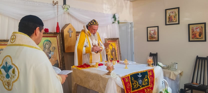 Seguidamente, el arzobispo presidió la celebración de la divina liturgia. Concelebró el padre Francis, párroco local. Se celebró el rito solemne de la liturgia.