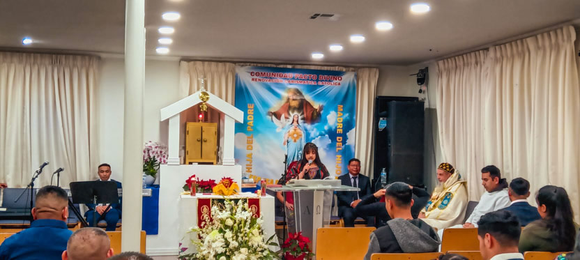 Ya bien entrada la noche, el arzobispo visitó la comunidad Pacto Divino, también ubicada en el Centro de la Ciudad de Los Ángeles, a poca distancia de la comunidad Poder del Espíritu Santo.