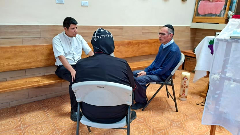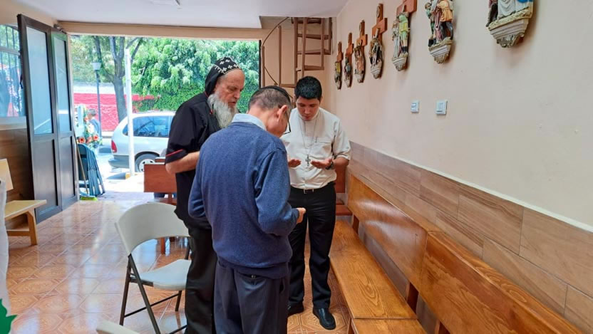 Apenas llegó el arzobispo, fue hacia la parroquia la Natividad de María, Las Bombas, para tener una brece reunión con el presbiterio del centro de Méico. El padre Henry no pudo participar por una gravedad de su hermana, por lo que solo estuvieron participando los padre Carlos y Dionisio. |