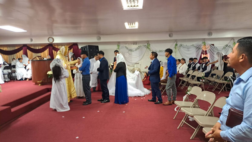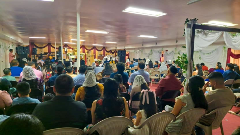 El hermano Pedro es un lídere predicador de la comunidad. En esta ocasión su esposa y dos de sus hijos fueron bendecidos para asumir algunos ministerios.