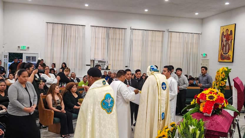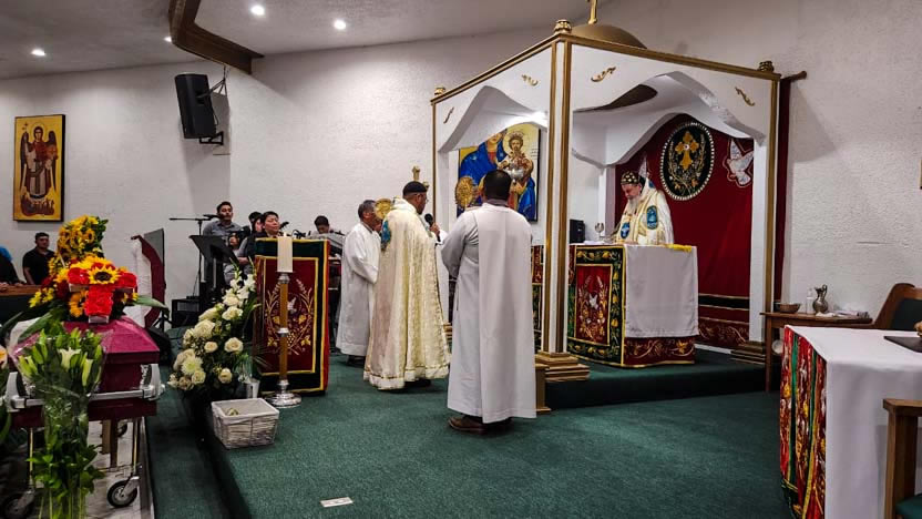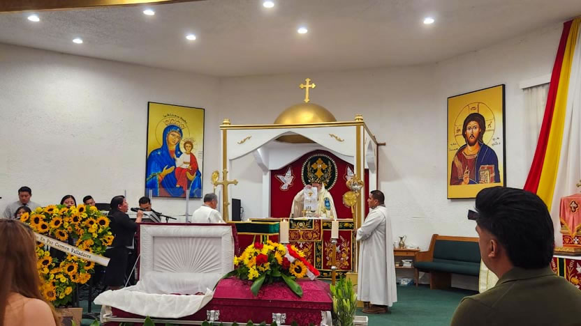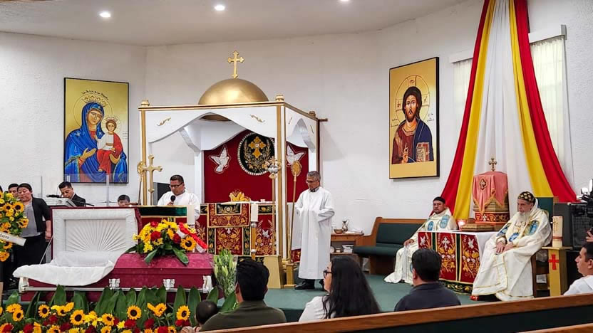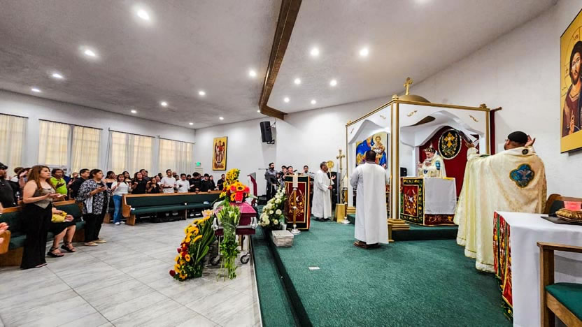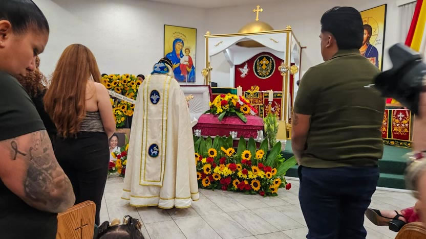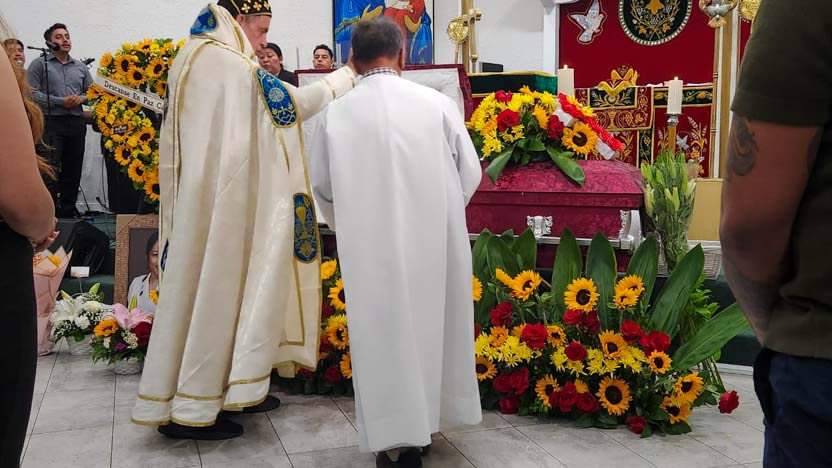 Al terminar la divina liturgia, el arzobispo hizo la bendición del féretro, como inicio del velatorio que seguiría por la hermana Carmen de Gutiérrez.