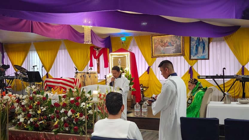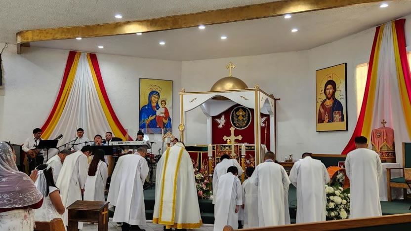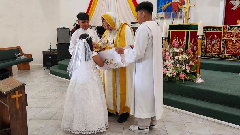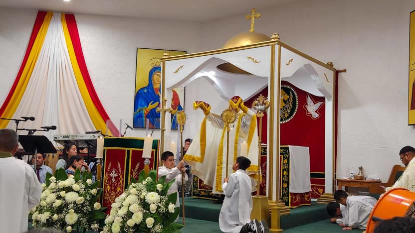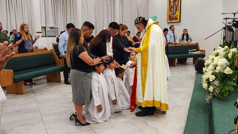 La visita sabatina del arzobispo a la comunidad Santa María de Guadalupe culminó con la celebración de la divina liturgia, la cual fue presidida por él y contó con la participación activa de todos los hermanos.