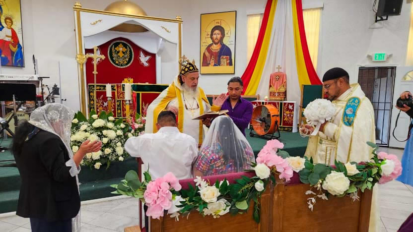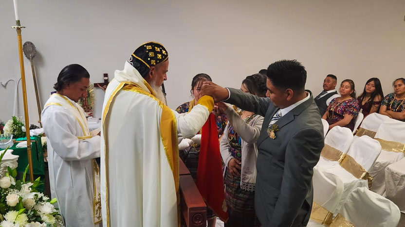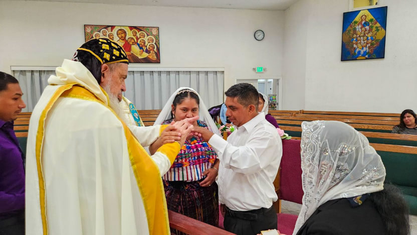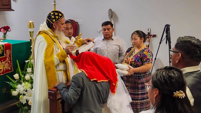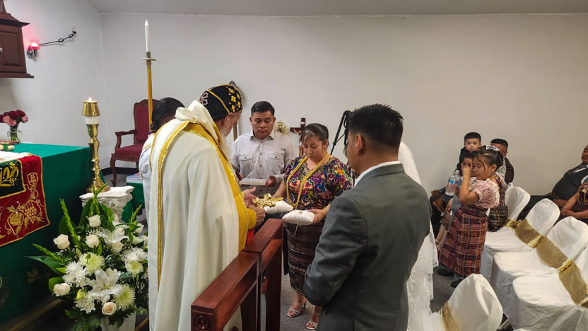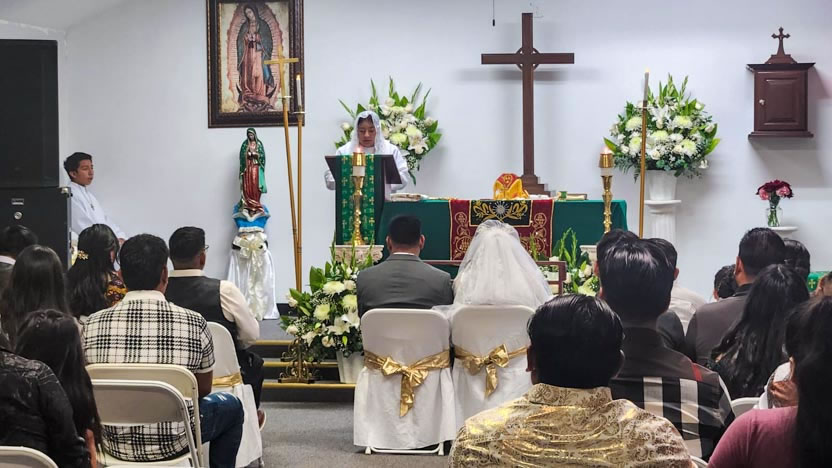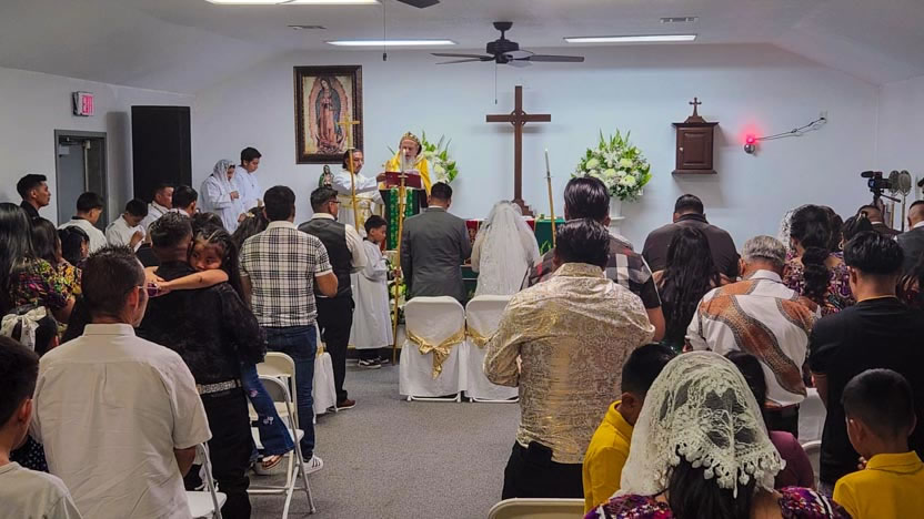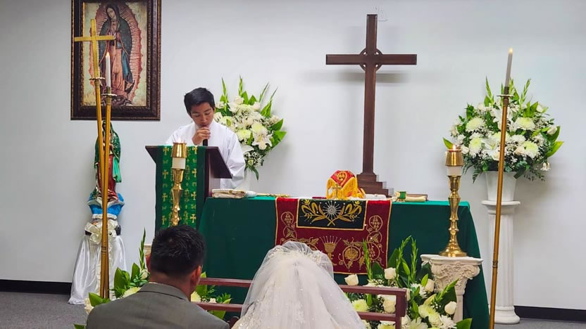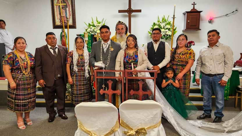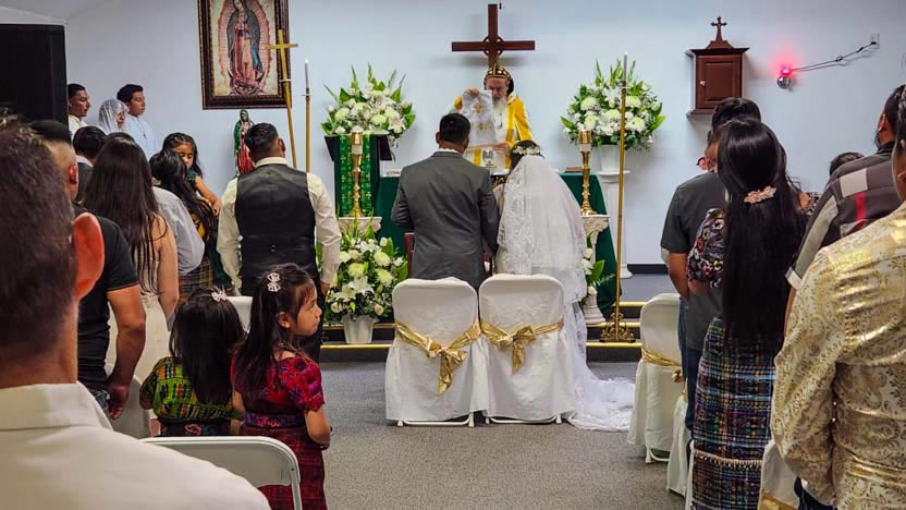 El centro de la visita del arzobispo a la comunidad Santa María de Guadalupe fue la celebración del matrimonio entre Edmundo y Rosa, después de una cuidadosa preparación.