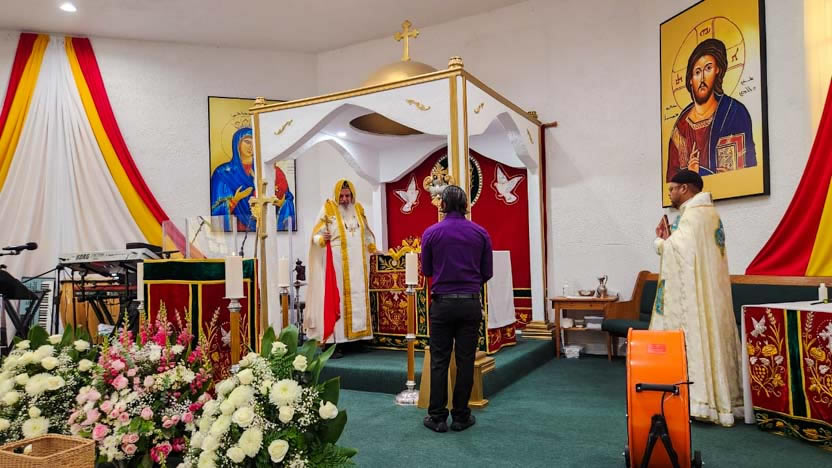 Finalmente, la asamblea de la parroquia de San Miguel Arcángel culminó con la celebración de la divina liturgia, la cual fue presidida por el arzobispo.