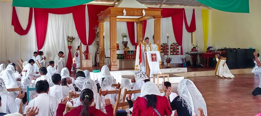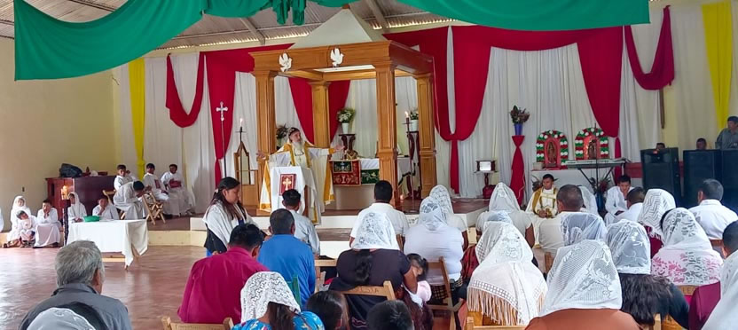| 27: DIVINA LITURGIA EN LA SEDE PARROQUIAL DEL BUEN PASTOR, AMPARO AGUA TINTA, MARGARITAS, CHIAPAS. |