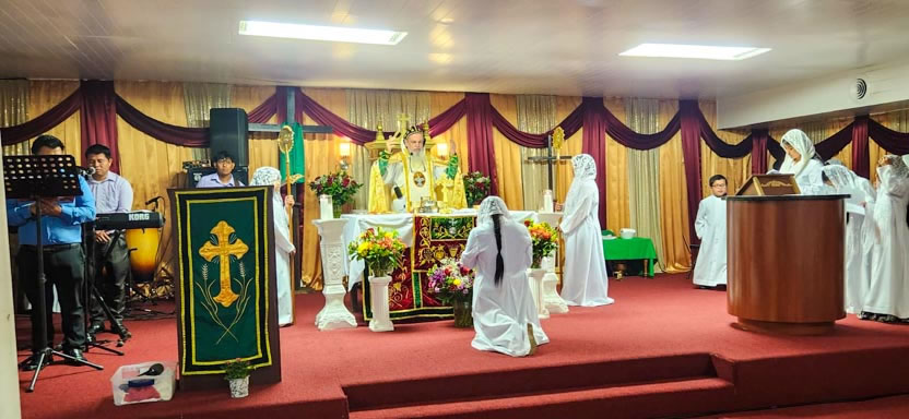 La actividad en la comunidad Voz del Espíritu Santo, culminó con la celebración de la divina liturgia, la cual fue presidida por el arzobispo y con la activa participación del pueblo de Dios.